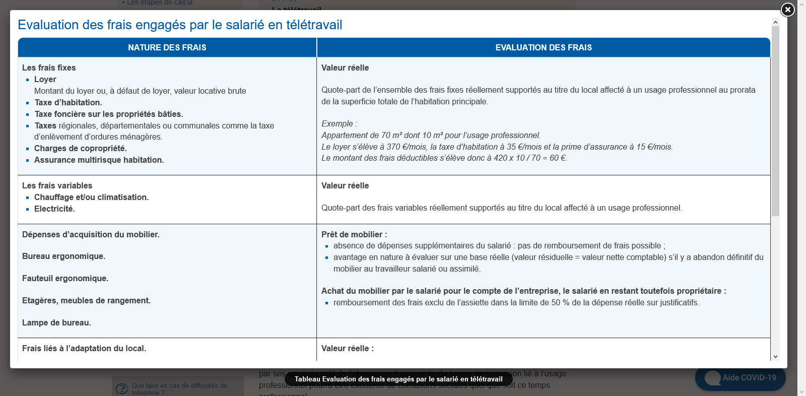 COVID19 – Liste des frais URSSAF